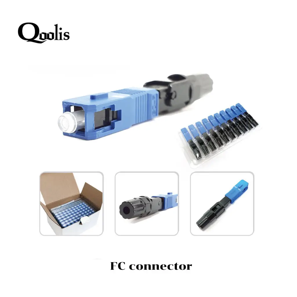Features – SC/APC (Green) and SC/UPC (Blue) fiber optic fast connectors – Used for connecting FTTH/FTTX fiber optic cables to equipment using a kit tool. The connector end has a straight cut with a 2.5 mm diameter.